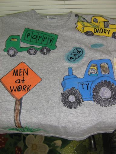 Keywords: tshirt t-shirt handicraft work craft shirt paint coloring book stencil trucks men at work