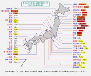 | Keywords: Tsunami map Tohoku2011jp.svg en Map of 2011 Tohoku Sendai earthquake observed tsunami heights in Japan ja 北 方太平洋沖 で観測された 日 各 の津波の高さ JMAhttp //www jma go jp/jp/tsunami/observation_04_20110313180559 html 1 http //www jma go jp/jma/press/1103/14c/tsunami_onahama html 2 http //www jma go jp/jma/press/1103/23b/tsunami_miyako_ofunato html 3 http //www jma go jp/jma/press/1103/29c/201103291900 html 4 Eastwind41 2013-06-24 English version translatable <br>120px Information field Additional information このファイルは File 2011 Tohoku earthquake observed tsunami heights pngの情報を元に再デザイン・SVG化したものです Created with Inkscape Valid SVG Maps and diagrams of the 2011 Tōhoku earthquake |