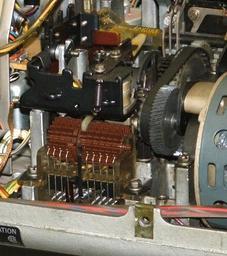 | Keywords: TTYanswserbackMechanism.jpg Teletype Model 33 ASR showing the answer-back drum the brown spined cylinder at the left center of the image By breaking off spines of this drum the message sent in response to the ASCII ENQ character could be encoded The drum operates like a music box mechanism with the comb of metal fingers in front of the drum reading out the message as the drum rotates 2013-11-25 12 15 47 own Douglas W Jones cc-zero Uploaded with UploadWizard ASR-33 Location not applicable |