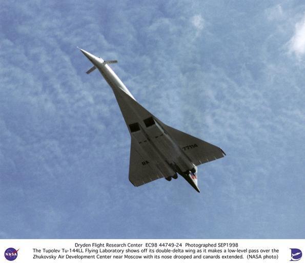 | Keywords: Tu-144LL SST Flying Laboratory in Flight DVIDS732424.jpg en measure nose boom pressures angle of attack and sideslip angles with increased accuracy Two NASA pilots Robert Rivers of Langley Research Center Hampton Virginia and Gordon Fullerton from Dryden Flight Research Center Edwards California assessed the aircraft's handling at subsonic and supersonic speeds during three flight tests in September 1998 The program concluded after four more data-collection flights in the spring of 1999 The Tu-144LL model had new Kuznetsov NK-321 turbofan engines rated at more than 55 000 pounds of thrust in full afterburner The aircraft is 215 feet 6 inches long and 42 feet 2 inches high with a wingspan of 94 feet 6 inches The aircraft is constructed mostly of light aluminum alloy with titanium and stainless steel on the leading edges elevons rudder and the under-surface of the rear fuselage The delta wing of the Tupolev Tu-144LL supersonic flying laboratory is evident in this view from underneath the aircraft during a 1998 test flight at the Zhukovsky Air Development Center near Moscow Russia NASA teamed with American and Russian aerospace industries for an extended period in a joint international research program featuring the Russian-built Tu-144LL supersonic aircraft The object of the program was to develop technologies for a proposed future second-generation supersonic airliner to be developed in the 21st Century The aircraft's initial flight phase began in June 1996 and concluded in February 1998 after 19 research flights A shorter follow-on program involving seven flights began in September 1998 and concluded in April 1999 All flights were conducted in Russia from Tupolev's facility at the Zhukovsky Air Development Center near Moscow The centerpiece of the research program was the Tu 144LL a first-generation Russian supersonic jetliner that was modified by its developer/builder Tupolev ANTK aviatsionnyy nauchno-tekhnicheskiy kompleks-roughly aviation technical complex into a flying laboratory for supersonic research Using the Tu-144LL to conduct flight research experiments researchers compared full-scale supersonic aircraft flight data with results from models in wind tunnels computer-aided techniques and other flight tests The experiments provided unique aerodynamic structures acoustics and operating environment data on supersonic passenger aircraft Data collected from the research program was being used to develop the technology base for a proposed future American-built supersonic jetliner Although actual development of such an advanced supersonic transport SST is currently on hold commercial aviation experts estimate that a market for up to 500 such aircraft could develop by the third decade of the 21st Century The Tu-144LL used in the NASA-sponsored research program was a D model with different engines than were used in production-model aircraft Fifty experiments were proposed for the program and eight were selected including six flight and two ground engine tests The flight experiments included studies of the aircraft's exterior surface internal structure engine temperatures boundary-layer airflow the wing's ground-effect characteristics interior and exterior noise handling qualities in various flight profiles and in-flight structural flexibility The ground tests studied the effect of air inlet structures on airflow entering the engine and the effect on engine performance when supersonic shock waves rapidly change position in the engine air inlet A second phase of testing further studied the original six in-flight experiments with additional instrumentation installed to assist in data acquisition and analysis A new experiment aimed at measuring the in-flight deflections of the wing and fuselage was also conducted American-supplied transducers and sensors were installed to NASA Identifier NIX-EC98-44749-24 2009-12-09 Glenn Research Center https //www dvidshub net/image/732424 732424 2012-10-17 18 29 WASHINGTON DC US PD-USGov Langley Research Center Images from DoD uploaded by Fæ |