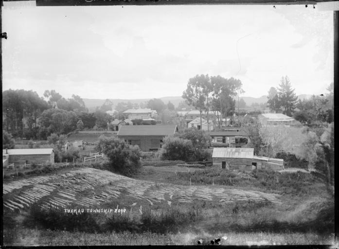 | Keywords: blackandwhite monochrome outdoor photo border building architecture black and white Tuakau township, photographed by William Archer Price between 1910 and 1930. In the foreground flax fibre is laid out for drying and bleaching. In the middle distance is the railway station are yards, with the township beyond. Identifiable buildings are the Tuakau Hotel, the Creamery (middle distance by tall trees), and Tapper Bros (drapery, etc). Inscriptions: Inscribed - Photographer's title on negative -bottom left: Tuakau township 2098. Quantity: 1 b&w original negative(s). Physical Description: Dry plate glass negative 4.75 x 6.5 inches Tuakau township. Price, William Archer, 1866-1948 :Collection of post card negatives. Ref: 1/2-001514-G. Alexander Turnbull Library, Wellington, New Zealand. natlib.govt.nz/records/22325643 Tuakau township, photographed by William Archer Price between 1910 and 1930. In the foreground flax fibre is laid out for drying and bleaching. In the middle distance is the railway station are yards, with the township beyond. Identifiable buildings are the Tuakau Hotel, the Creamery (middle distance by tall trees), and Tapper Bros (drapery, etc). Inscriptions: Inscribed - Photographer's title on negative -bottom left: Tuakau township 2098. Quantity: 1 b&w original negative(s). Physical Description: Dry plate glass negative 4.75 x 6.5 inches Tuakau township. Price, William Archer, 1866-1948 :Collection of post card negatives. Ref: 1/2-001514-G. Alexander Turnbull Library, Wellington, New Zealand. natlib.govt.nz/records/22325643 |
