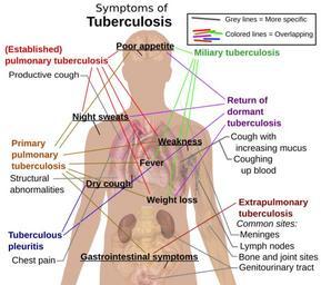 | Keywords: Tuberculosis symptoms.svg en Main symptoms of different variants and stages of tuberculosis See Wikipedia Tuberculosis with many symptoms overlapping with other variants while others are more but not entirely specific for certain variants Multiple variants may be present simultaneously <P>To discuss image please see Template talk Human body diagrams <P>References http //www emedicinehealth com/tuberculosis/page3_em htm Tuberculosis Symptoms From eMedicineHealth Author George Schiffman MD FCCP Last Editorial Review 1/15/2009 Additional symptoms for primary/early pulmonary infection http //www wrongdiagnosis com/t/tuberculosis/symptoms htm wrongdiagnosis com --> Diseases » Tuberculosis » Symptoms Retrieved on June 1 2009 All used images are in public domain Mikael Häggström gallery of 2014 2009-06-01 Tuberculosis symptoms versions See also <gallery class nochecker > File Pulmonary tuberculosis symptoms svg Pulmonary tuberculosis symptoms File Extrapulmonary tuberculosis symptoms svg Extrapulmonary tuberculosis symptoms </gallery> Human body diagrams Tuberculosis SVG diagrams of the adult male human body by Mikael Häggström |