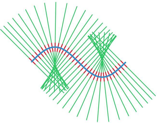 Keywords: Tubular neighborhood.png Illustration of en Tubular neighborhood Made with en Matlab Oleg Alexandrov 03 01 1 June 2007 UTC Public domain Created with MATLAB Source code MATLAB <source lang matlab > illustration of tubular neighborhood function main f inline 'sin x ' 'x' ; will construct a tubular neighborhood of this curve a 0; b 2 pi; N 100; X linspace a b N ; consider N points in the interval a b Y f X ; the curve ll 3; length of lines perpendicular to the curve lls 0 3; smaller subsegments thin_line 2; thick_line 4; will draw lines perpendicular to the graph of Y f X at points separted by length of 'spacing' spacing 0 033; M floor spacing N ; colors red 0 867 0 06 0 14; blue 0 129 205/256; green 0 200 70/256; figure 1 ; clf; hold on; axis equal; axis off; plot the lines for k 1 N p k-1 M+2; if p > N break; end the normal to the curve at X p Y p Normal - Y p+1 -Y p-1 X p+1 -X p-1 ; Normal Normal/norm Normal ; plot X p -ll Normal 1 X p +ll Normal 1 Y p -ll Normal 2 Y p +ll Normal 2 'color' green 'linewidth' thin_line plot X p -lls Normal 1 X p +lls Normal 1 Y p -lls Normal 2 Y p +lls Normal 2 'color' red 'linewidth' 0 7 thick_line end plot the curve plot X Y 'linewidth' thick_line ; saveas gcf 'Tubular_neighborhood eps' 'psc2' </source> Images with Matlab source code tubular neighborhood Files by User Oleg Alexandrov from en wikipedia math |