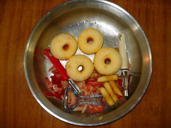 Keywords: Tufahije Apples with Corer, Peeler and Trimmer.JPG en Bosnian dessert preparation tools own Miansari66 Cc-zero Apple corers Peelers Tufahije Cuisine of Pakistan