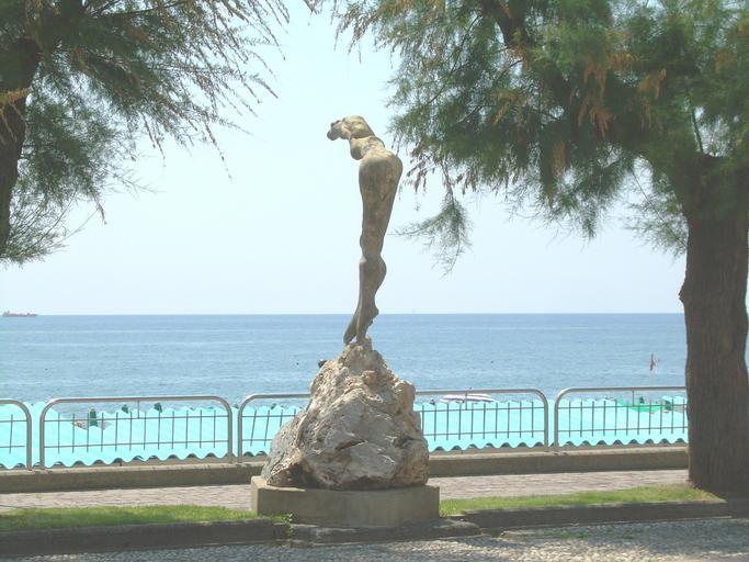 | Keywords: Tuffatrice da terga.jpg Titolo Tuffatrice materiale acciaio rame cementi speciali armati bronzo pietra peso 152 Kg circa Celle Ligure 2005 Lupo Rosso PD-self GFDL Cc-by-sa-3 0-migrated Commento generale del critico sulla scultura di Lupo Rosso La scultura ricerca di soluzioni tecniche e rappresentazione delle emozioni Gran parte delle conversazioni sulla scultura avute con il maestro è stata spesa intorno a problemi relativi alla specifica ricerca di alchimistiche combinazioni tra materiali lapidei oppure sui vizi e le virtù delle pietre naturali le più e le meno pregiate come quelle più o meno lavorabili e ancora su complessi studi per ottenere l ™effetto del bronzo lavorando la pietra e così via Questi racconti avvincenti che spiegano il nucleo della ricerca di Alfonso Gialdini si dirigono poi abitualmente verso l ™affascinante rievocazione della volta in cui riuscì a procurarsi per farci una scultura uno splendido e unico blocco di legno tek -forse l ™albero di un ™antica nave o la trave di una vetusta costruzione- o di quando trovò in natura un piccolo e circoscritto giacimento di pietra da lavorare Il suo ufficio domestico separato dall ™officina in cui scolpisce ricorda un piccolo studiolo rinascimentale dove innumerevoli componenti si uniscono in un insieme unitario e indecifrabile arnesi curiosità fossili miniature fogli disposti ordinatamente in perfetto disordine Evidentemente dello scultore genovese accanto alla priorità di una vivida umanità emerge il sostrato dei suoi compiuti studi di ingegneria meccanica che lo portano a legare fortemente l ™azione creativa e ideativa in lui libera e sensibilmente emotiva con i meccanismi di controllo e programmazione propri del metodo scientifico Il risultato è sorprendente perché si rivela capace tanto di far comprendere le virtù tecnico-costruttive della scultura quanto di trasportarci con immediatezza nel mondo delle idee e delle emozioni L ™artista investe sia in scultura figurativa sia in opere di ricerca dinamica astrattamente formali scolpisce in sintesi seguendo un ™ispirazione di tipo sintetico-antropomorfo L ™oggetto principale del suo studio è la rappresentazione della figura femminile proposta in numerose varianti di sensibilità ferina Venere steatopigica di sapore tribale o esile ma monumentale tuffatrice sospesa per aria Ancora fatta tutta di membra calda protettrice dell ™uomo che avvolge con forti abbracci o fiera sostenitrice del primario contributo femminile alla vita quando non ambisce a suonare con il proprio corpo come la cassa armonica del violino L ™alternativa per il maestro sono le teste di cavallo naturalistiche rappresentazioni di colli nervosi negli studi per sé o dinamiche e forti macchine belliche come locomotive in corsa con le redine che diventano bielle cavalli che sono il simbolo della corsa alla liberazione dei popoli bestie forti e docili che stramazzano sacrificandosi di fronte a un ingiusto e violento trattamento del padrone Il Rompighiaccio sul tema-studio delle teste di ariete rappresenta ancora questa tensione potente difficilmente governabile lanciata verso un destino mortale A Genova il maestro dal 1995 mette a disposizione dei degenti dell ™ex ospedale psichiatrico di Quarto i propri mezzi e conoscenze organizzando corsi di scultura all ™interno di un programma di riabilitazione espressiva ottiene particolari successi nel veder migliorare anche attraverso questa esperienza la condizione degli allievi Marco Franzone saggista in storia arte genovese commento del critico Specifico Nuova scultura a Celle Ligure E ' stata inaugurata di recente la svettante scultura La Tuffatrice dello scultore genovese un'opera fortemente aerodinamica alta m 1 85 e composta da un paio di gambe unite tese nello sforzo di concentrazione per il salto nel vuoto che proseguono nella solidità di un corpo femminile piegato in avanti a squadra all'altezza della vita con braccia e testa chine verso il basso Prende così forma la silhouette di una giovane donna che specie verso il culmine della statua evoca alla percezione visiva l'agile forma di un guizzante delfino L'opera è stata realizzata in cemento e pietra con armatura d'acciaio dalle tonalità oscillanti tra squamature brunite e macchie biancastre a carattere schiumoso Sembra quasi materializzarsi un vibratile derma chiazzato in alcuni punti di porosa salsedine Infatti questa affascinante scultura è stata posizionata sulla sommità di uno scoglio collocato sulla passeggiata a mare di Pennello in prossimità di Celle Ligure così da spruzzarsi di mare entro il quale idealmente dovrebbe tuffarsi Il genovese è solido scultore di figure umane ed animali sovente al limite della figurazione e spesso intese come blocchi petrigni carichi di energia in tensione come è il caso di questo lavoro in cui il corpo è contratto nella solidità muscolare e concentrato nel compimento di un atletico e perfetto tuffo Questa opera è copia di un'altra scultura ed è stata assegnata dall'autore alla cittadina di Celle è stata posizionata sulla passeggiata a mare in occasione del gemellaggio tra la cittadina di Celle in Germania e la nostra cittadina balneare omonima avvenuto venerdì 19 e sabato 20 maggio Miriam Cristaldi La Tuffatrice Alfonso Gialdini |
