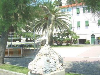 | Keywords: Tuffatrice frontale.jpg Titolo Tuffatrice materiale acciaio rame cementi speciali armati bronzo pietra peso 152 Kg circa Celle Ligure 2005 Lupo Rosso PD-self GFDL Cc-by-sa-3 0-migrated Commento generale del critico sulla scultura di Lupo Rosso La scultura ricerca di soluzioni tecniche e rappresentazione delle emozioni Gran parte delle conversazioni sulla scultura avute con il maestro è stata spesa intorno a problemi relativi alla specifica ricerca di alchimistiche combinazioni tra materiali lapidei oppure sui vizi e le virtù delle pietre naturali le più e le meno pregiate come quelle più o meno lavorabili e ancora su complessi studi per ottenere l ™effetto del bronzo lavorando la pietra e così via Questi racconti avvincenti che spiegano il nucleo della ricerca di Alfonso Gialdini si dirigono poi abitualmente verso l ™affascinante rievocazione della volta in cui riuscì a procurarsi per farci una scultura uno splendido e unico blocco di legno tek -forse l ™albero di un ™antica nave o la trave di una vetusta costruzione- o di quando trovò in natura un piccolo e circoscritto giacimento di pietra da lavorare Il suo ufficio domestico separato dall ™officina in cui scolpisce ricorda un piccolo studiolo rinascimentale dove innumerevoli componenti si uniscono in un insieme unitario e indecifrabile arnesi curiosità fossili miniature fogli disposti ordinatamente in perfetto disordine Evidentemente dello scultore genovese accanto alla priorità di una vivida umanità emerge il sostrato dei suoi compiuti studi di ingegneria meccanica che lo portano a legare fortemente l ™azione creativa e ideativa in lui libera e sensibilmente emotiva con i meccanismi di controllo e programmazione propri del metodo scientifico Il risultato è sorprendente perché si rivela capace tanto di far comprendere le virtù tecnico-costruttive della scultura quanto di trasportarci con immediatezza nel mondo delle idee e delle emozioni L ™artista investe sia in scultura figurativa sia in opere di ricerca dinamica astrattamente formali scolpisce in sintesi seguendo un ™ispirazione di tipo sintetico-antropomorfo L ™oggetto principale del suo studio è la rappresentazione della figura femminile proposta in numerose varianti di sensibilità ferina Venere steatopigica di sapore tribale o esile ma monumentale tuffatrice sospesa per aria Ancora fatta tutta di membra calda protettrice dell ™uomo che avvolge con forti abbracci o fiera sostenitrice del primario contributo femminile alla vita quando non ambisce a suonare con il proprio corpo come la cassa armonica del violino L ™alternativa per il maestro sono le teste di cavallo naturalistiche rappresentazioni di colli nervosi negli studi per sé o dinamiche e forti macchine belliche come locomotive in corsa con le redine che diventano bielle cavalli che sono il simbolo della corsa alla liberazione dei popoli bestie forti e docili che stramazzano sacrificandosi di fronte a un ingiusto e violento trattamento del padrone Il Rompighiaccio sul tema-studio delle teste di ariete rappresenta ancora questa tensione potente difficilmente governabile lanciata verso un destino mortale A Genova il maestro dal 1995 mette a disposizione dei degenti dell ™ex ospedale psichiatrico di Quarto i propri mezzi e conoscenze organizzando corsi di scultura all ™interno di un programma di riabilitazione espressiva ottiene particolari successi nel veder migliorare anche attraverso questa esperienza la condizione degli allievi Marco Franzone saggista in storia arte genovese commento del critico Specifico Nuova scultura a Celle Ligure E ' stata inaugurata di recente la svettante scultura La Tuffatrice dello scultore genovese un'opera fortemente aerodinamica alta m 1 85 e composta da un paio di gambe unite tese nello sforzo di concentrazione per il salto nel vuoto che proseguono nella solidità di un corpo femminile piegato in avanti a squadra all'altezza della vita con braccia e testa chine verso il basso Prende così forma la silhouette di una giovane donna che specie verso il culmine della statua evoca alla percezione visiva l'agile forma di un guizzante delfino L'opera è stata realizzata in cemento e pietra con armatura d'acciaio dalle tonalità oscillanti tra squamature brunite e macchie biancastre a carattere schiumoso Sembra quasi materializzarsi un vibratile derma chiazzato in alcuni punti di porosa salsedine Infatti questa affascinante scultura è stata posizionata sulla sommità di uno scoglio collocato sulla passeggiata a mare di Pennello in prossimità di Celle Ligure così da spruzzarsi di mare entro il quale idealmente dovrebbe tuffarsi Il genovese è solido scultore di figure umane ed animali sovente al limite della figurazione e spesso intese come blocchi petrigni carichi di energia in tensione come è il caso di questo lavoro in cui il corpo è contratto nella solidità muscolare e concentrato nel compimento di un atletico e perfetto tuffo Questa opera è copia di un'altra scultura ed è stata assegnata dall'autore alla cittadina di Celle è stata posizionata sulla passeggiata a mare in occasione del gemellaggio tra la cittadina di Celle in Germania e la nostra cittadina balneare omonima avvenuto venerdì 19 e sabato 20 maggio Miriam Cristaldi La Tuffatrice Alfonso Gialdini |