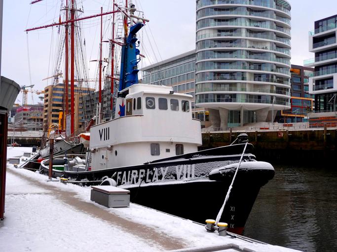 Keywords: tug port seafaring ship hamburg boot industry water schleppdampfer elbe maritime germany shipping support industriehafen winter