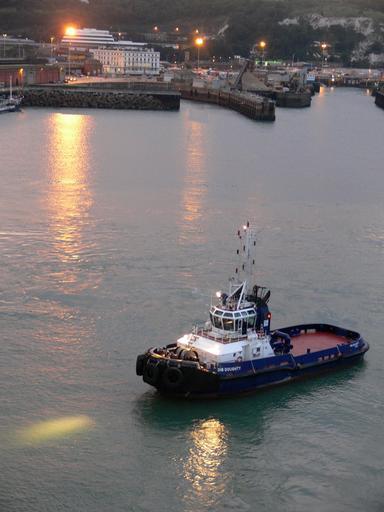 | Keywords: Tugboat.JPG  en Tugboat DHB Doughty in Dover England at night United Kingdom of Great Britain IMO - 9190468 MMSI - 232004783 ENI - 902898 Call Sign - MZGA8 Casco built by PO SevMash Predpriyatiye at Severodvinsk RUS Completed by Damen Shipyards at Gorinchem Netherlands March 2000 Delivered to Barclays Mercantile Business Finance Ltd manager DHB - Dover Harbour Board at Dover June 1st 2000 Named by Dover Harbour Board members Margaret Llewellyn and Cynthia Alers Length - 30 82m overall 101 09 ft Breadth - 10 20m 33 46 ft Depth - 4 80m 15 75 ft Draught - 4m 13 0 ft maximum Tonnage - 304 gross 91 net Engines - 2 x 4tew 6cyl Wartsilla 6L26 Propulsion - Twin Aquamaster Azimuth Speed - 12 0 - 13 5 knots max Power range total - 2500 - 3600 bkW 3353 - 4828 bhp Total Output - 3 600 kW at 1 000rpm Bollard Pull - 35 7 - 55 8 tonnes Total tank capacity - 231 m³ Sister Ship DHB Dauntless Own Pmarshal 2006-09-24 DHB Doughty tugboat 2000  |