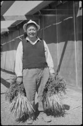 | Keywords: Tule Lake Relocation Center, Newell, California. Project farmer with carrots. - NARA - 539424.jpg Scope and content General notes 539424 Local identifier 210-G-G47 Department of the Interior War Relocation Authority 02/16/1944 - 06/30/1946 NARA-Author Cook John Photographer 1168638 <br /> Still Picture Records Section Special Media Archives Services Division NWCS-S National Archives at College Park 8601 Adelphi Road College Park MD 20740-6001 1942 - 1945 Record group Record Group 210 Records of the War Relocation Authority 1941 - 1989 Record group ARC 537 Central Photographic File of the War Relocation Authority compiled 1942 - 1945 Series ARC 536000 File unit File unit ARC Variant control numbers NAIL Control Number NWDNS-210-G-G47 Other versions <gallery> File Tule_Lake_Relocation_Center _Newell _California _Project_farmer_with_carrots _-_NARA_-_539424 tif tif File Tule_Lake_Relocation_Center _Newell _California _Project_farmer_with_carrots _-_NARA_-_539424 jpg jpg </gallery> NARA-cooperation PD-USGov Tule Lake War Relocation Center NARA images of Modoc County California Black and white photographs of men Black and white photographs of California |