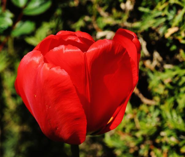 Keywords: tulip blossom bloom flower spring plant red color nature early bloomer colorful perspective