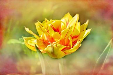 Keywords: tulip flower blossom bloom yellow red spring flower schnittblume colorful intense color garden spring