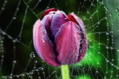 Keywords: tulip flower blossom bloom purple plant schnittblume spring flower cobweb drop of water close