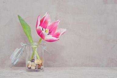 Keywords: tulip flower blossom bloom pink white vase deco decorative stones spring flower schnittblume text freedom negative space