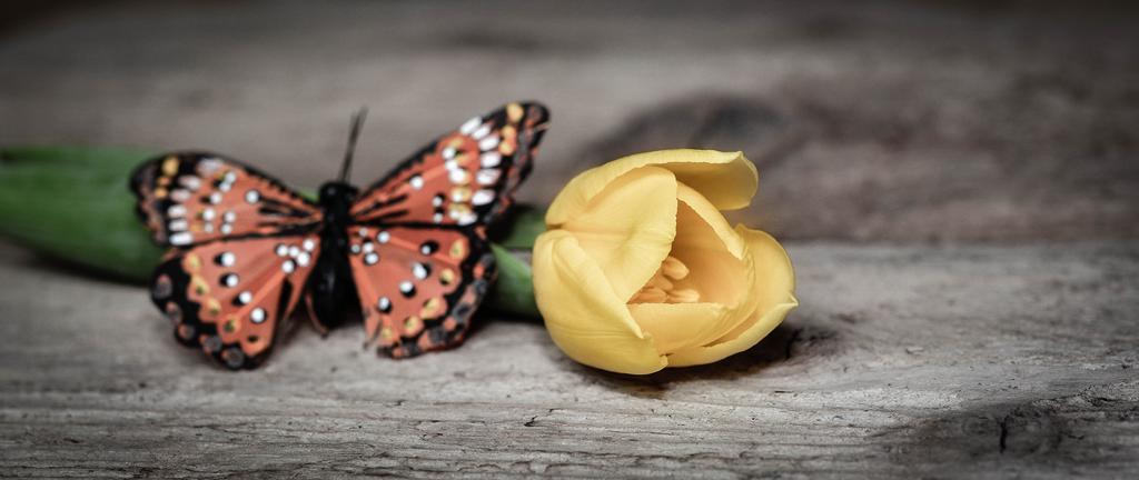 Keywords: tulip flower schnittblume yellow yellow flower butterfly wood close