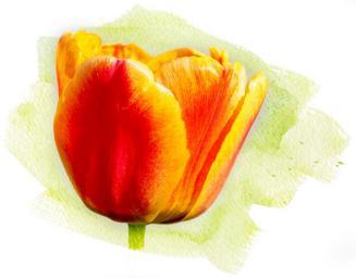 Keywords: tulip flower spring flower blossom bloom orange yellow close watercolor