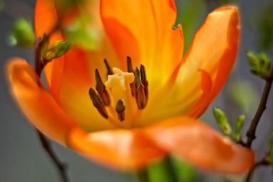 Keywords: tulip macro orange blossom bloom nature plant flower spring lily schnittblume flora flower bracts yellow blossomed close pastellfarben green colorful pistil holland