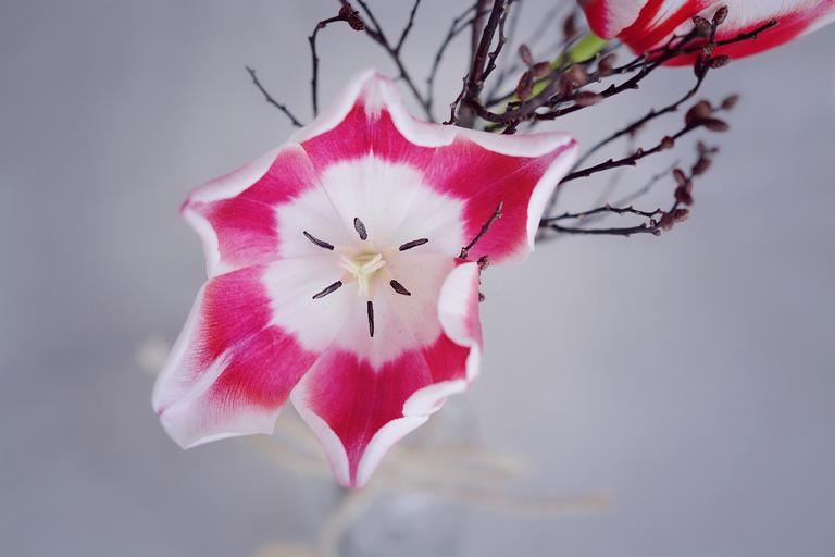 Keywords: tulip pink white flower blossom bloom open flower plant schnittblume spring flower close