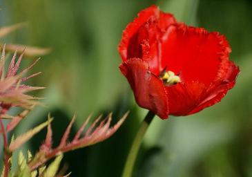 Keywords: tulip red flower red tulip flower cup closeup a flower garden nature flora red green inside a flower sunny spring flowering jagged the background