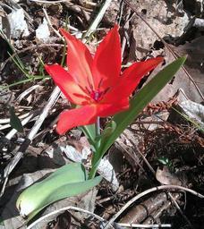 Keywords: tulip red forest orphaned alone change of location loneliness