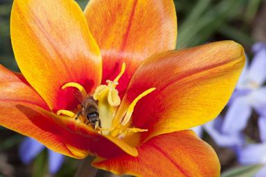 Keywords: tulip stamp stamens lily family spring nature flower schnittblume blossom bloom plant flora flower bracts garden orange red bee tulipa kaufmannia