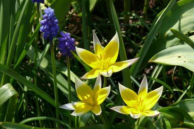 Keywords: tulip tarda muscari grape hyacinth yellow blue spring blossom plant floral garden