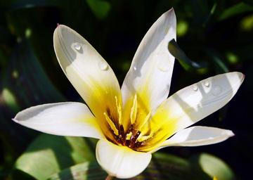 Keywords: tulip white open water spring blossom bloom flower garden tulpenbluete cup stamens drop of water shiver april weather spring flowers blossomed close