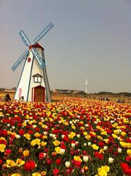 Keywords: tulip windmill field colorful