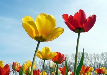 Keywords: tulip yellow red blossom bloom spring color yellow tulips flora flower tulip field