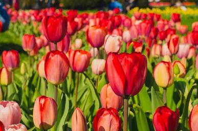 Keywords: tulips garden blooming flowers blossoms petals colorful spring nature bright field outdoors fresh