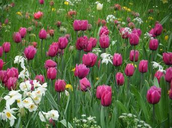 Keywords: tulips grass meadow mainau spring purple blossom bloom flower plant nature garden green violet noble tulip bloom pink