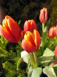 Keywords: tulips orange red spring tulips green plants flowers beautiful close-up bouquet color filled