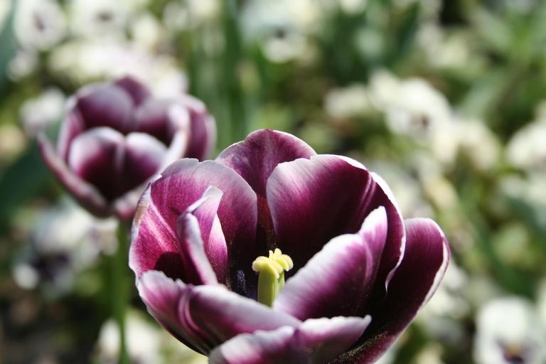 Keywords: tulips purple flowers meadow field spring rural nature landscape bloom tree fields april sky blossom bloom cornflower