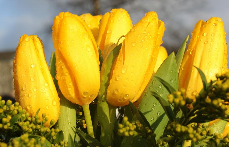 Keywords: tulips tulipa bouquet flowers spring blossom bloom schnittblume spring greetings bloom colorful raindrop