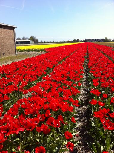 Keywords: tullips red flowers fields netherlands spring holland nature dutch