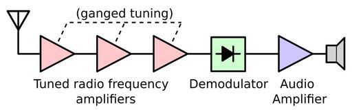 | Keywords: Tuned radio frequency (TRF) receiver block diagram.svg tuned radio frequency TRF receiver a type of radio receiver circuit invented in 1916 by Ernst Alexanderson and widely used in the vacuum tube receivers of the 1920s It consisted of one or more tuned RF amplifiers a detector demodulator to extract the audio waveform from the radio carrier wave followed by an audio amplifier 2015-12-29 own Chetvorno other versions cc-zero Radio electronic diagrams Radio receivers Uploaded with UploadWizard |