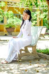 Keywords: tunic white schools students girls school grounds alone shy remember anniversary sun asia vietnam sunshine memory outdoors summer