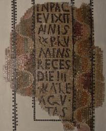 | Keywords: Tunis Bardo mosaïque tombale 1.jpg fr Musée Nationale de Bardo Mosaïque tombale own Rais67 2010 Paleochristian mosaics in the Bardo National Museum Tunis Paleochristian inscriptions Bardo National Museum Tunis Ancient Roman inscriptions in the Bardo National Museum Tunis |