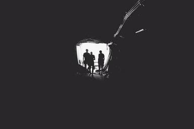Keywords: tunnel mining mine people silhouettes men dark hole cave black and white entrance open