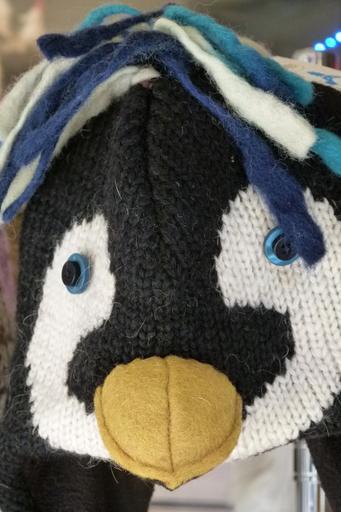 Keywords: tuque knitted funny cap wool penguin face close-up