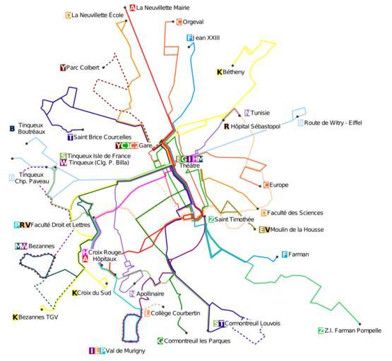 | Keywords: Tur2007.svg en Schematic map of Reims' TUR buses network fr Plan schématique du réseau des Transports Urbains de Reims en Own realization based on the official map fr Œuvre personnelle basée sur le plan officiel 2007-11-22 user daiima / fr user daiima Public Domain Image ReseauTUR gif <br /><div align center > toccolours width 75 cellpadding 7 +Les évolutions du réseau T U R de 1873 à 2010<br />Evolutions of the bus network in Reims from 1873 to 2010 ccccff align center Carte précédente<br />Previous map ccccff align center Carte actuelle<br />This map ccccff align center Carte suivante<br />Next map - FEFF7F align center Image Tur1994 svg FEFF7F align center Image Tur2007 svg FEFF7F align center Image Tur2010 svg - E6FF7F align center 1994 E6FF7F align center 2007 E6FF7F align center 2010 </div> Public transport maps of Reims |