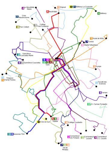 | Keywords: Tur2010.svg en Schematic map of planned Reims' TUR tramways and buses network for 2010 fr Plan schématique du réseau envisagé pour les Transports Urbains de Reims dès fin 2010 http //www tramwaydereims fr/_V2/pdf/reseau_tc pdf 2007-11-23 user daiima / fr user daiima Public Domain <br /><div align center > toccolours width 75 cellpadding 7 +Les évolutions du réseau T U R de 1873 à 2010<br />Evolutions of the bus network in Reims from 1873 to 2010 ccccff align center Carte précédente<br />Previous map ccccff align center Carte actuelle<br />This map ccccff align center Carte suivante<br />Next map - FEFF7F align center Image Tur2007 svg<br /> Image ReseauTUR gif FEFF7F align center Image Tur2010 svg FEFF7F align center - E6FF7F align center 2007 E6FF7F align center 2010 E6FF7F align center Dernière - Last </div> Public transport maps of Reims |