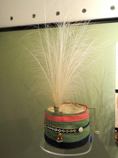 Keywords: Turban, Seminole, cotton with egret plume, collected in 1936 - Native American collection - Peabody Museum, Harvard University - DSC05506.JPG Turban Seminole cotton with egret plume collected in 1936 Exhibit from the Native American Collection Peabody Museum Harvard University Cambridge Massachusetts USA Photography was permitted without restriction; exhibit is old enough so that it is in the public domain Daderot 2012-03-18 13 26 24 Daderot cc0 cc0 Native American Collection Peabody Museum Harvard University Seminole tribe Native American headgear Turbans Unidentified Ardeidae taxidermied Feather accessories Native American feather art |