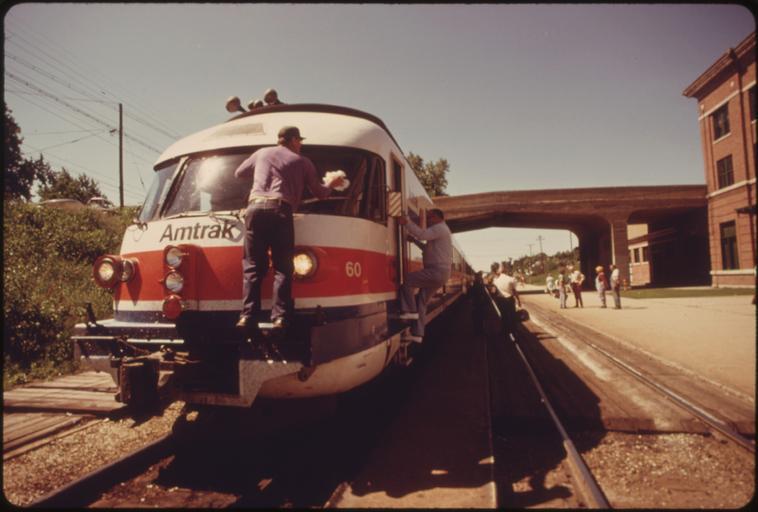 | Keywords: TURBOLINER ENGINE'S WINDSHIELD IS CLEANED AS THE PASSENGER TRAIN IS STOPPED AT BLOOMINGTON, ILLINOIS, ENROUTE FROM... - NARA - 556063.jpg Scope and content General notes 556063 Local identifier 412-DA-13611 Environmental Protection Agency 12/02/1970 - NARA-Author O'Rear Charles 1941- Photographer 3403717 <br /> Bloomington McLean Illinois United States North and Central America inhabited place 3321928 40 483 -88 983 <br /> Still Picture Records Section Special Media Archives Services Division NWCS-S National Archives at College Park 8601 Adelphi Road College Park MD 20740-6001 06/1974 Record group Record Group 412 Records of the Environmental Protection Agency 1944 - 2006 Record group ARC 708 DOCUMERICA The Environmental Protection Agency's Program to Photographically Document Subjects of Environmental Concern compiled 1972 - 1977 Series ARC 542493 File unit File unit ARC Variant control numbers Agency-Assigned Identifier 227/51/013611<br /> NAIL Control Number NWDNS-412-DA-13611 Other versions <gallery> File TURBOLINER_ENGINE'S_WINDSHIELD_IS_CLEANED_AS_THE_PASSENGER_TRAIN_IS_STOPPED_AT_BLOOMINGTON _ILLINOIS _ENROUTE_FROM _-_NARA_-_556063 tif tif File TURBOLINER_ENGINE'S_WINDSHIELD_IS_CLEANED_AS_THE_PASSENGER_TRAIN_IS_STOPPED_AT_BLOOMINGTON _ILLINOIS _ENROUTE_FROM _-_NARA_-_556063 jpg jpg </gallery> NARA-cooperation PD-USGov Turboliner Amtrak Class RTG Bloomington station Chicago Alton Railroad 1974 in Illinois NARA images of Illinois Amtrak in 1974 June 1974 in the United States |