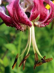 Keywords: turk's cap lily lilium martagon turk's cap lily lily flower blossom bloom red plant flora botany close pistil stamp pestle pollen macro bloom petals close up