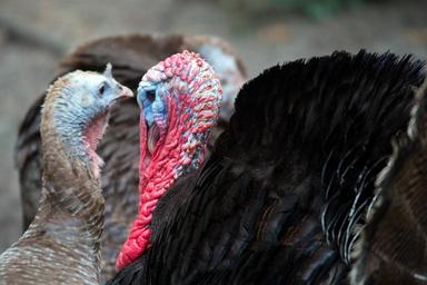 Keywords: turkeys wildlife blue face pink crop feathers portrait