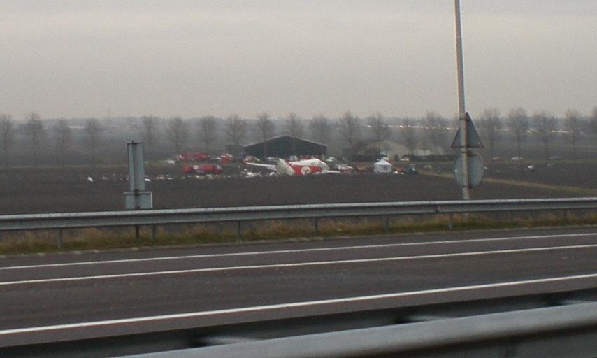 | Keywords: Turkish Airlines Flight 1951 (1b).JPG en Turkish Airlines Flight 1951 was a scheduled flight from Istanbul Turkey to Amsterdam Netherlands The Boeing 737-800 aircraft broke up into three parts due to the crash into a field outside Amsterdam's Schiphol Airport at 9 31 UTC 10 31 CET on 25 February 2009 Although the wreck did not catch fire an official press conference confirmed the death of nine people and the injury of eighty The crash site is located approximately 3 kilometres 1 9 mi north of the Polderbaan runway 18R-36L just beside the A9 motorway The cause of the crash has not yet been determined de Turkish Airlines Flug 1951 war ein Linienflug vom Atatürk-Flughafen in Istanbul nach Amsterdam Am 25 Februar 2009 gegen 09 40 Uhr UTC stürzte das Flugzeug beim Landeanflug auf den Flughafen Schiphol ab Die Absturzstelle liegt etwa drei Kilometer nördlich des Aufsetzpunktes der Landebahn 18R unweit des Autobahnkreuzes Rottepolderplein der A9 mit der A200 westlich von Zwanenburg 12 Das Flugzeug zerbrach in drei Teile fing aber kein Feuer Laut offizieller Pressekonferenz gab es 9 Tote und 50 Verletzte fr Le vol 1951 Turkish Airlines est un vol régulier de la compagnie aérienne nationale Turkish Airlines entre Istambul et Amsterdam Le Boeing 737-800 s'est écrasé à proximité de l'aéroport d'Amsterdam-Schiphol le 25 février 2009 faisant 9 morts et 50 blessés nl Turkish Airlines-vlucht 1951 was een vlucht van Luchthaven Istanbul Atatürk naar Schiphol Het vliegtuig een Boeing 737-800 gebouwd in 2002 van de Turkse maatschappij Turkish Airlines stortte op 25 februari 2009 rond 10 31 uur neer in een weiland bij Schiphol ten noorden van de Polderbaan nabij autosnelweg A9 own Janericloebe 2009-02-25 52 3767 4 712877 Turkish Airlines Flight 1951 |