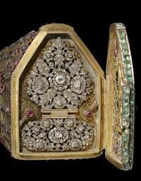 | Keywords: Turkish - Rifle - Walters 5184 - Detail H.jpg Referencing the elite pastimes of hunting and writing this ceremonial jeweled rifle set includes a dagger pen case penholder with pen penknife cleaner and a spoon-all conveniently housed within the rifle butt Penknives were important elements in the calligrapher's toolset and their handles were often elaborately decorated The hardness of the reed used for pens throughout Islamic lands required a good blade to make a clean cut The small spoon was used to put black powder into the flash pan in preparation for firing the rifle The imperial monogram tughra of the Ottoman ruler Sultan Mahmud I r 1730-54 is inscribed in diamonds inside the hinged panel of the rifle butt The artist Muhammad and the rifle's owner Ahmad Khan who had possession of the rifle at some point are also named 1732-33 Early Modern rifle steel wood gold gilded silver gilded brass silver nephrite diamonds emeralds rubies or spinels ; dagger steel inlaid with gold rubies and beryls cm 24 8 139 7 7 accession number 51 84 22655 R S Pardo Constantinople date and mode of acquisition unknown Henry Walters Baltimore 1903 mode of acquisition unknown Walters Art Museum Henry Walters Acquired by Henry Walters 1903 Translation on barrel What God wills on flintlock Work of Muhammad; its owner is Ahmad Khan tughra hidden under panel in stock is that of Sultan Mahmud I r 1730-1754 place of origin Turkey Walters Art Museum license Islamic metalwork in the Walters Art Museum Weapons in the Walters Art Museum Firearms of the Ottoman Empire Art from Turkey Media contributed by the Walters Art Museum needs category review |