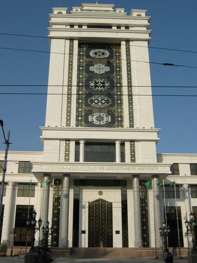 | Keywords: Turkmen state institute of transport and communication2.JPG en Turkmenistan state institute of transport and communication Ashgabat Turkmenistan 2009 year photo ru Ту кменский госуда ственный институт т анспо та и связи Ашхабад Ту кменистан Фото 2009 года own ILMur 2009-10-12 Buildings in Aşgabat Cc-zero |