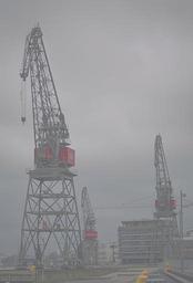 Keywords: turku port crane harbor crane fog hazy rain city