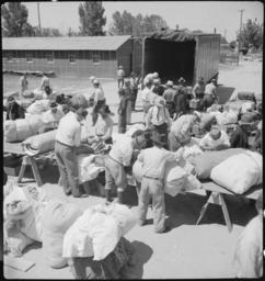 | Keywords: Turlock, California. Baggage is inspected as families arrive at Turlock assembly center. Evacuees . . . - NARA - 537648.jpg Scope and content The full caption for this photograph reads Turlock California Baggage is inspected as families arrive at Turlock assembly center Evacuees of Japanese ancestry will be transferred later to War Relocation Authority centers where they will spend the duration General notes 537648 Local identifier 210-G-C301 Department of the Interior War Relocation Authority 02/16/1944 - 06/30/1946 NARA-Author Lange Dorothea 1895-1965 Photographer 1372774 <br /> Still Picture Records Section Special Media Archives Services Division NWCS-S National Archives at College Park 8601 Adelphi Road College Park MD 20740-6001 1942-04-02 Record group Record Group 210 Records of the War Relocation Authority 1941 - 1989 Record group ARC 537 Central Photographic File of the War Relocation Authority compiled 1942 - 1945 Series ARC 536000 File unit File unit ARC Variant control numbers NAIL Control Number NWDNS-210-G-C301 Other versions <gallery> File Turlock _California _Baggage_is_inspected_as_families_arrive_at_Turlock_assembly_center _Evacuees_ _ _ _-_NARA_-_537648 tif tif File Turlock _California _Baggage_is_inspected_as_families_arrive_at_Turlock_assembly_center _Evacuees_ _ _ _-_NARA_-_537648 jpg jpg </gallery> NARA-cooperation PD-USGov Dorothea Lange Turlock Assembly Center |